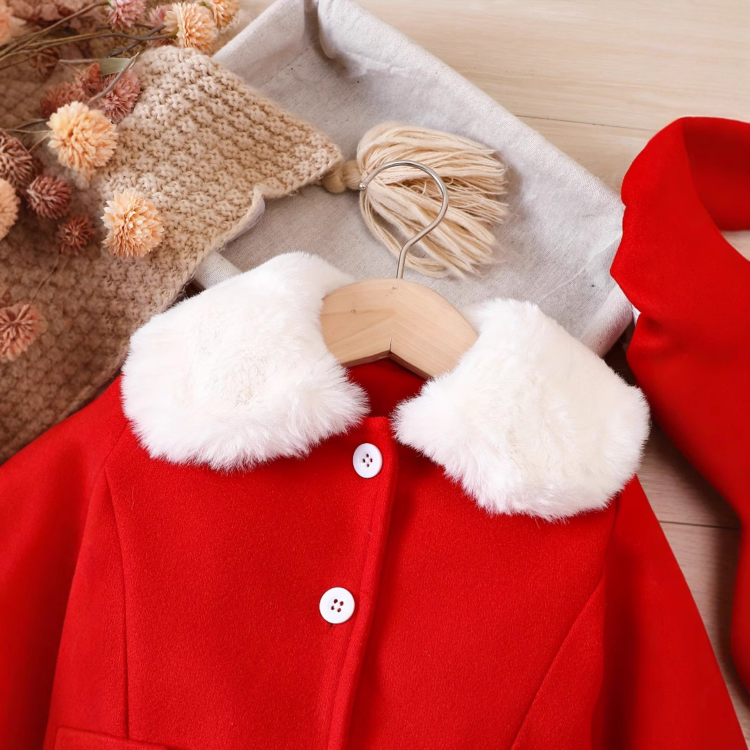 Palton roșu elegant pentru fetițe cu guler de blăniță – Palton călduros iarnă