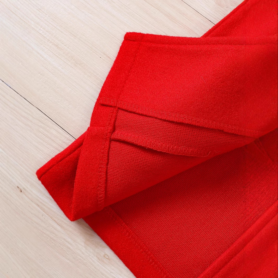 Unul dintre elementele distinctive ale acestui palton este gulerul supradimensionat din blăniță albă, care aduce un plus de rafinament și căldură. Această blăniță este moale, pufoasă și plăcută la atingere, oferind protecție suplimentară în zona gâtului, acolo unde copiii sunt adesea expuși la frig. Gulerul completează perfect nuanța roșie intensă a paltonului, creând un contrast plăcut și elegant, perfect pentru perioada sărbătorilor de iarnă.