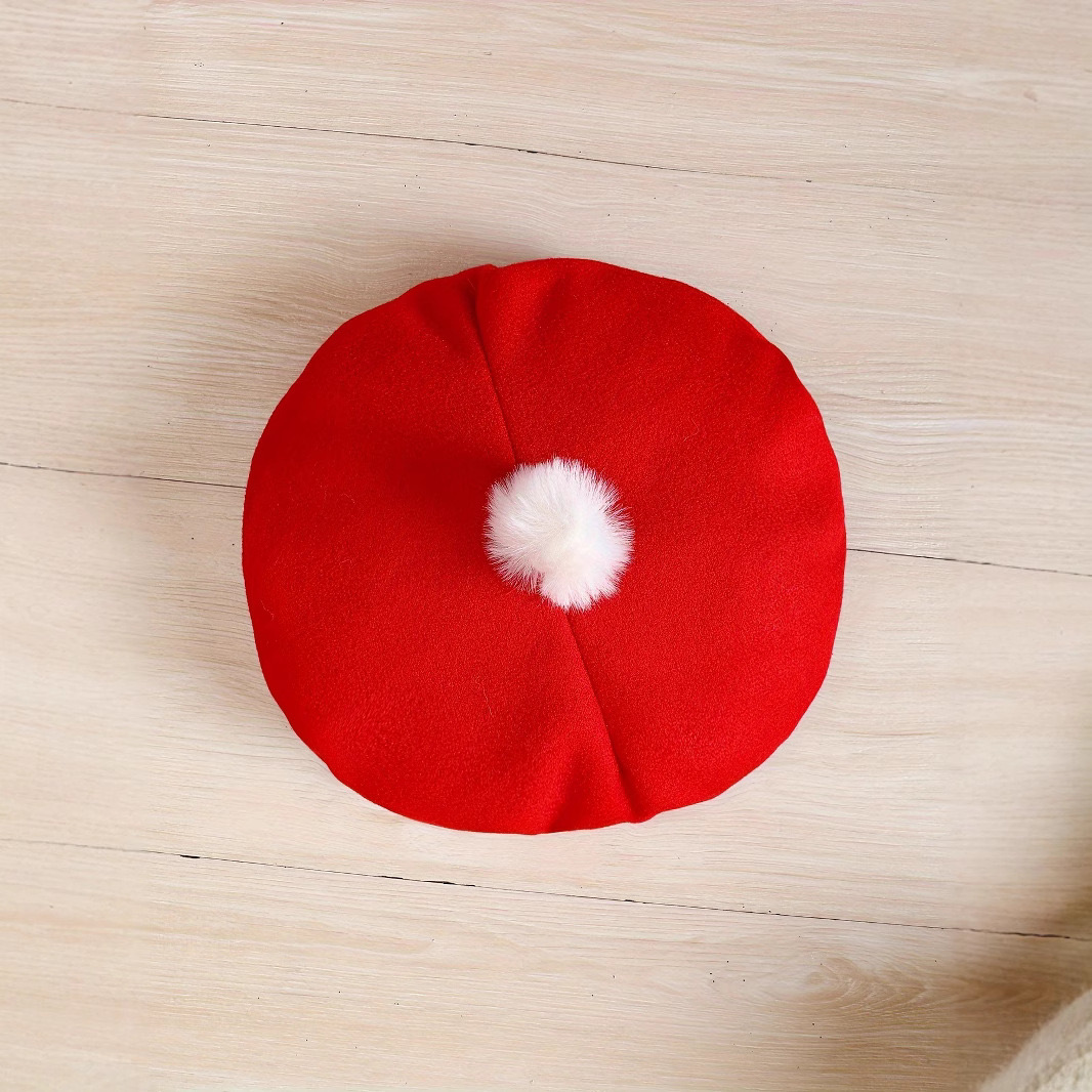 Designul său este completat de o pălărioară asortată, realizată în aceeași nuanță de roșu intens. Aceasta oferă o ținută completă și bine coordonată, ideală pentru fotografii, evenimente speciale, serbări sau ieșiri în familie. Pălărioara este confortabilă, ușoară și plăcută la purtare, uniformizând perfect întreaga ținută și subliniind stilul rafinat al setului.
