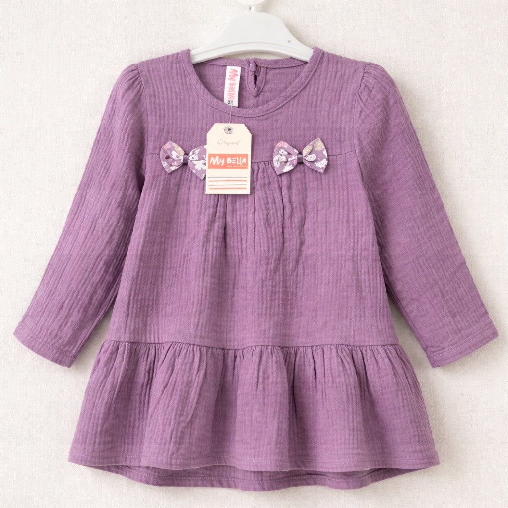 Fabricată cu grijă din bumbac fin 100%, rochița noastră este extrem de moale și delicată cu pielea sensibilă a bebelușului. Bumbacul de calitate superioară permite pielii să respire, prevenind iritațiile și asigurând un confort optim pe tot parcursul zilei. Ne asigurăm că micuța ta se simte bine în hainele ei!