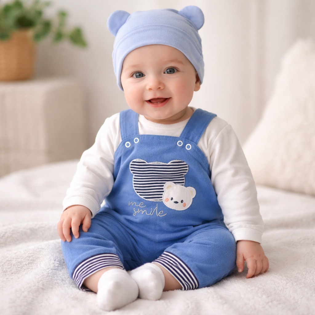 Salopetă din doua piese ME SMILE 3-6-9 luni .Descoperă confortul suprem și siguranța pentru micuțul tău cu salopeta din catifea, ideală pentru bebelușii cu vârste cuprinse între 3 și 9 luni.Această salopetă combină materiale de înaltă calitate cu un design practic și sigur.