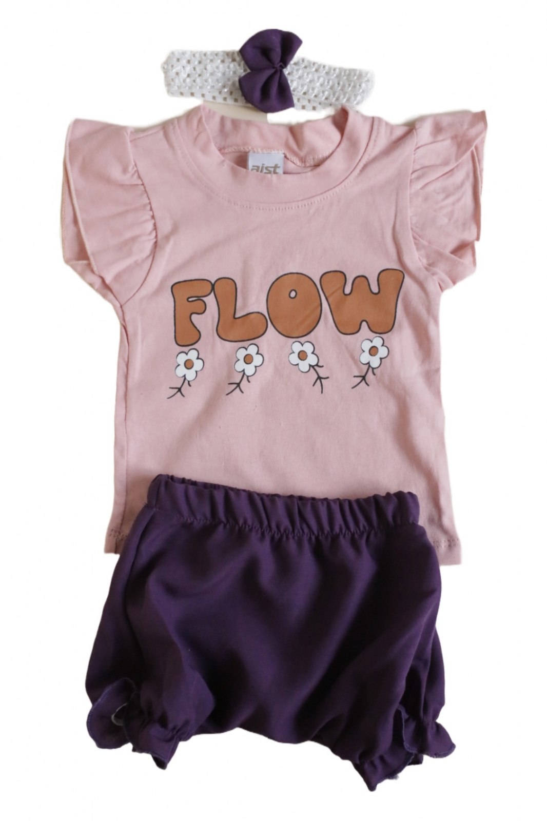Set vară fetițe 3 piese – tricou, pantaloni scurți și bentiță asortată din bumbac moale