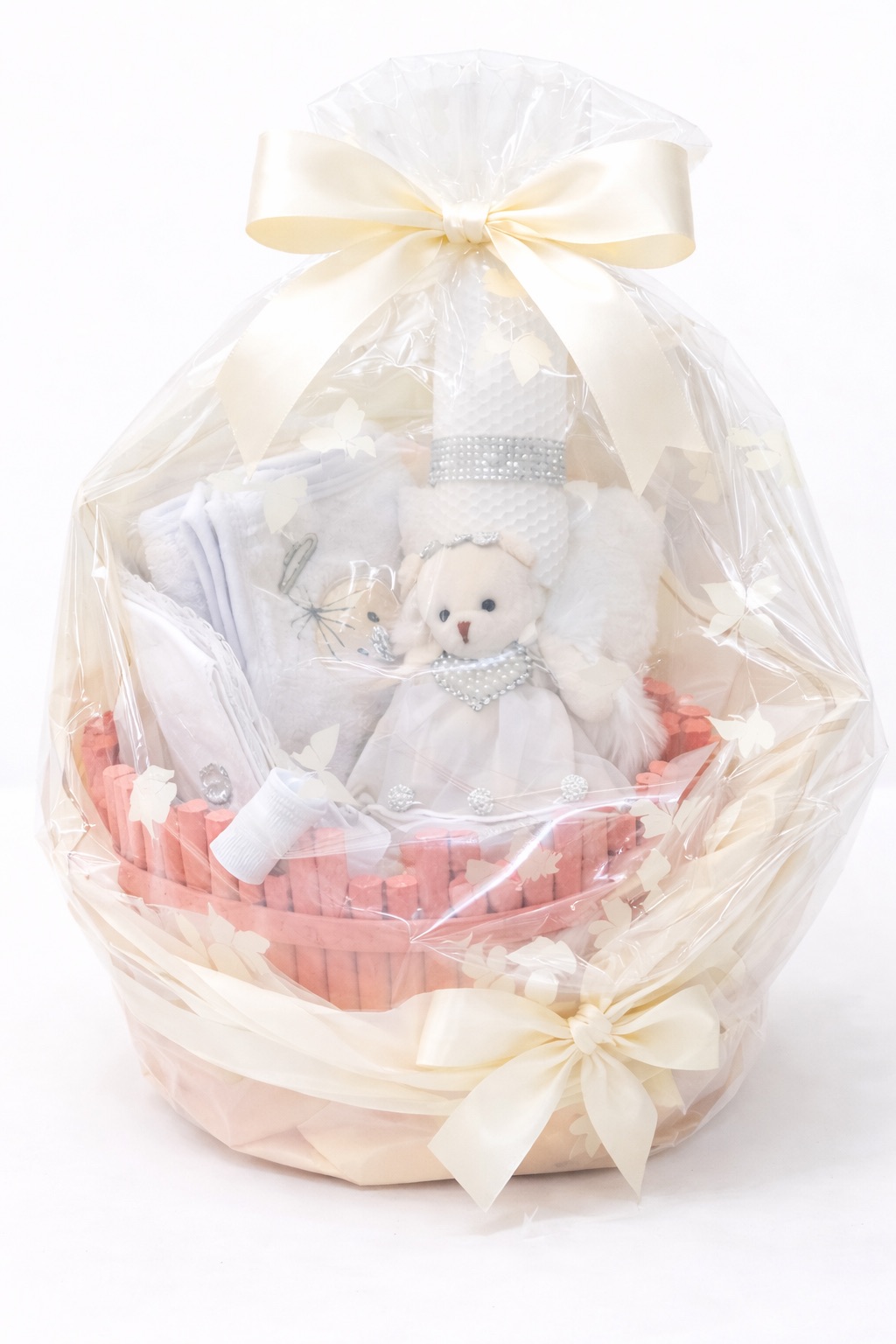 Acest trusou botez pentru copii este conceput ca un pachet unicat, cu accent pe detalii: lumânarea tip fagure are textura specifică, elegantă, și este pusă în valoare de decorul fin (panglici, elemente premium și accente atent plasate). În poze, lumânarea este completată de un personaj decorativ (ursuleț/îngeraș), ceea ce o transformă într-o piesă centrală pentru ceremonia de botez și pentru fotografii. Pentru multe familii, lumânarea botez nu este doar „încă un obiect”, ci simbolul momentului, iar faptul că este o lumânare din ceară naturală, lucrată manual, o ridică imediat la nivel de produs premium, potrivit pentru un eveniment cu adevărat important.